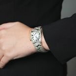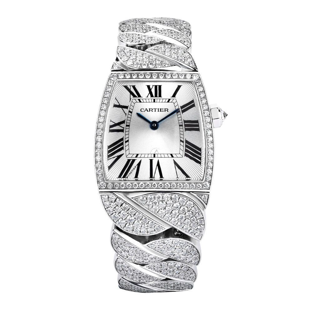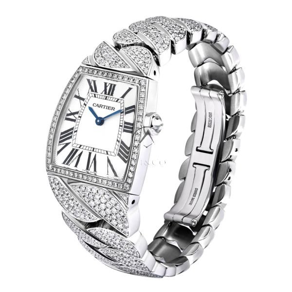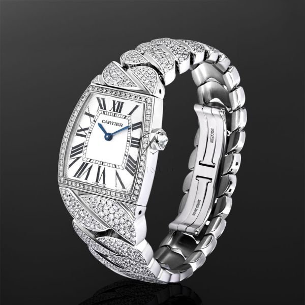 The Cartier La Dona De Cartier WE6601MX is a stunning tribute to bold femininity and timeless elegance. Inspired by the legendary Mexican actress Mara Flix, this sophisticated timepiece captures the spirit of strong, independent women. Its 29mm asymmetrical case, crafted in radiant 18K white gold, offers a sculptural silhouette that wraps elegantly around the wrist. The silver dial is adorned with Cartiers iconic Roman numerals and striking blued steel sword-shaped hands, offering classic appeal with a contemporary edge. A matching white gold bracelet seamlessly integrates with the case, enhancing the watchs flowing form and luxurious presence. Designed for those who appreciate refined craftsmanship and distinctive style, the La Dona de Cartier is more than a watchit's a statement of character and grace.